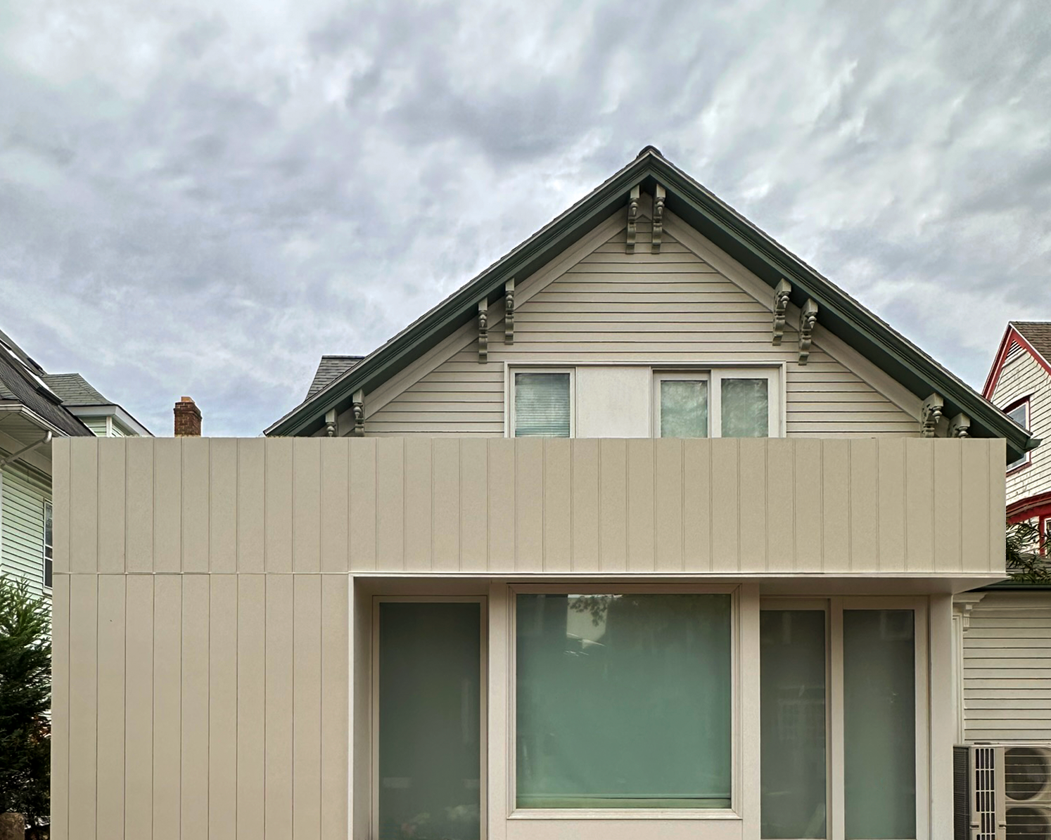 The project is an extensive renovation and addition to a late nineteenth century Victorian home complete with octagonal corner turret and projecting bay windows.